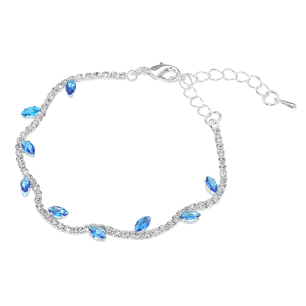 • Graceful tennis bracelet featuring marquise-shaped cluster vine accents along a slim, curved cz band. The delicate structure and adjustable clasp create a refined silhouette that complements any elegant or formal style, adding subtle brilliance to wristwear collections.