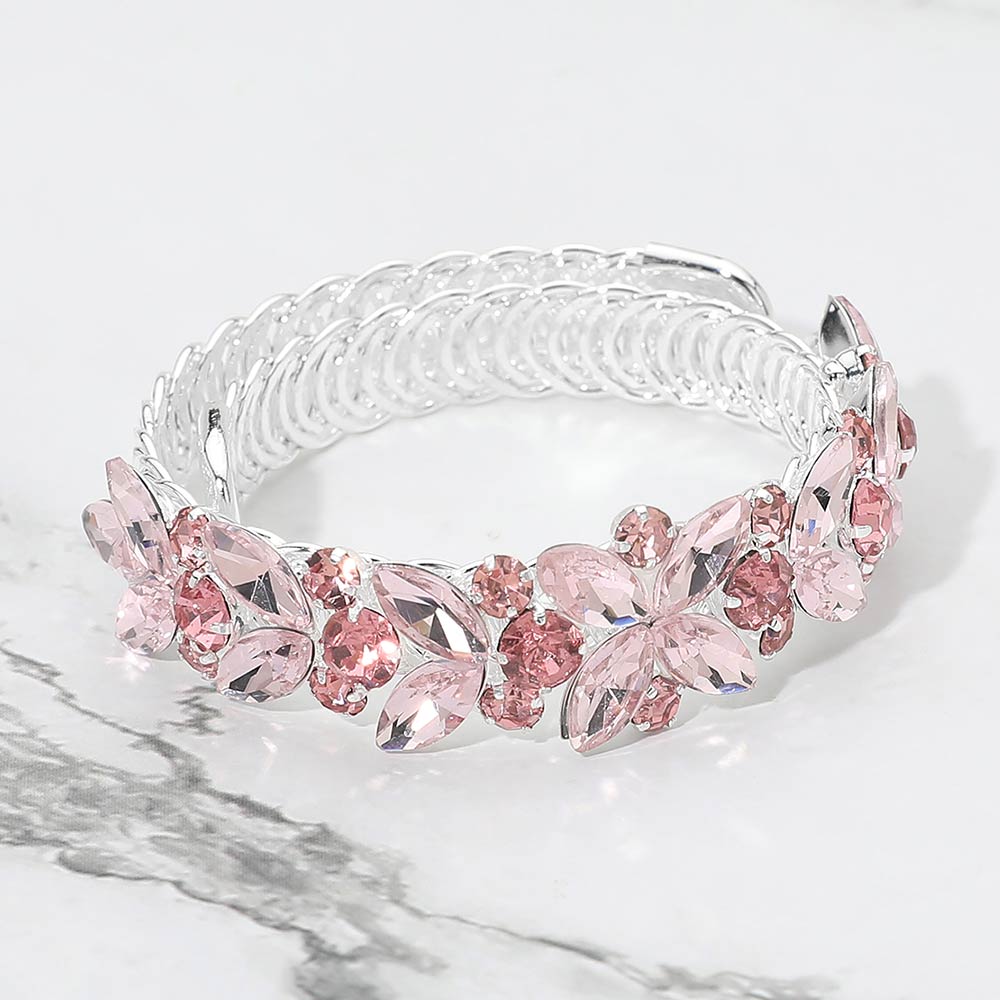 • Refined adjustable bracelet featuring floral-inspired crystal accents for a graceful, eye-catching look. Designed with a flexible fit for comfortable wear throughout the day or evening. Ideal for weddings, parties, formal events, or elevating everyday outfits with subtle sparkle.