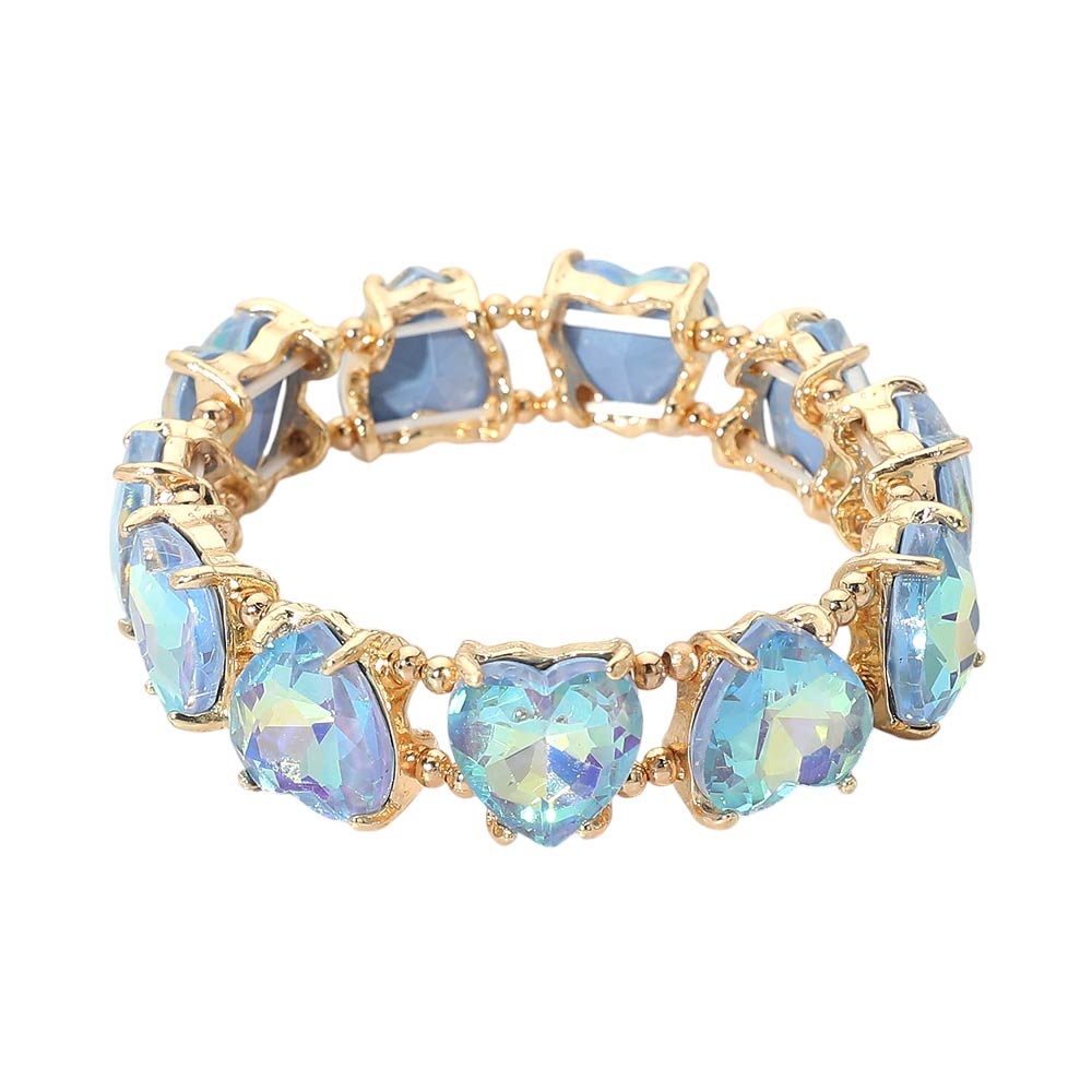 Heart Stone Cluster Beaded Stretch Evening Bracelet