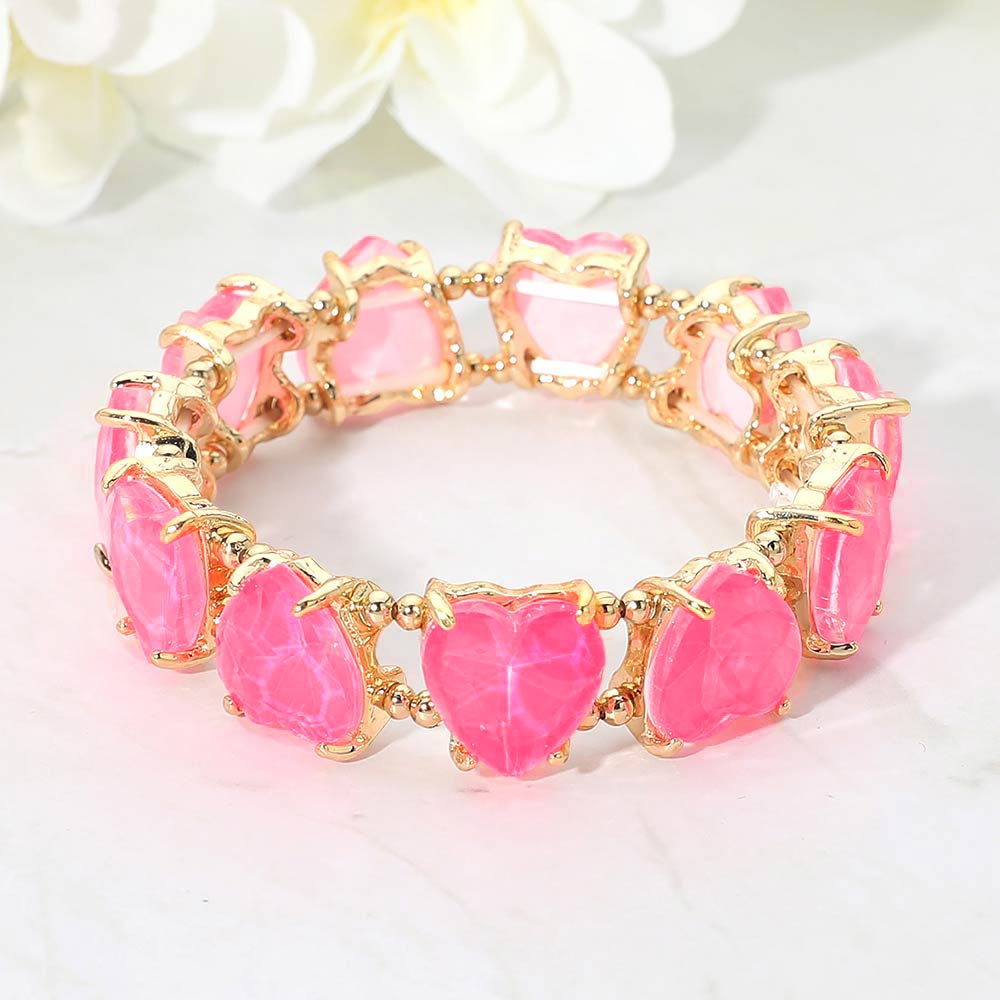Heart Stone Cluster Beaded Stretch Evening Bracelet