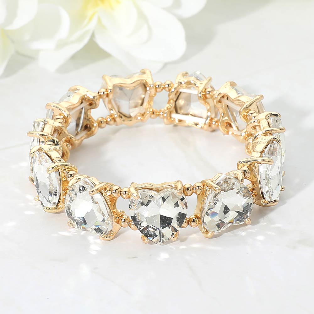 Heart Stone Cluster Beaded Stretch Evening Bracelet