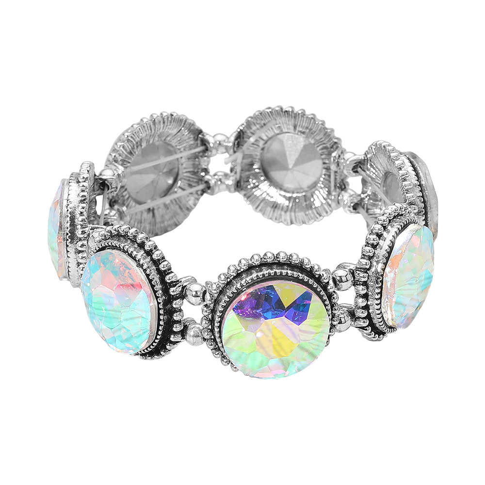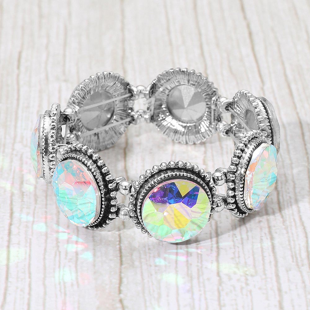 Iridescent Round Stone Link Stretch Evening Bracelet