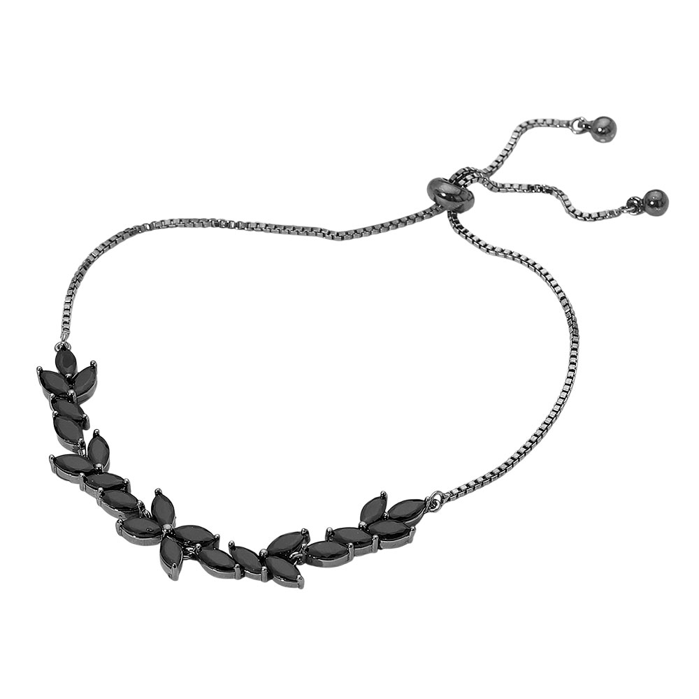 Details • Size : 0.3" H, 10.5" L • Adjustable • This adjustable bracelet features a graceful leaf motif adorned with shimmering crystals, creating a refined and radiant look. Designed for comfort and elegance, it’s an ideal choice for adding subtle sophistication to formal attire or elevating your everyday ensemble effortlessly. • CZ Cubic Zirconia • Lead and Nickel Compliant