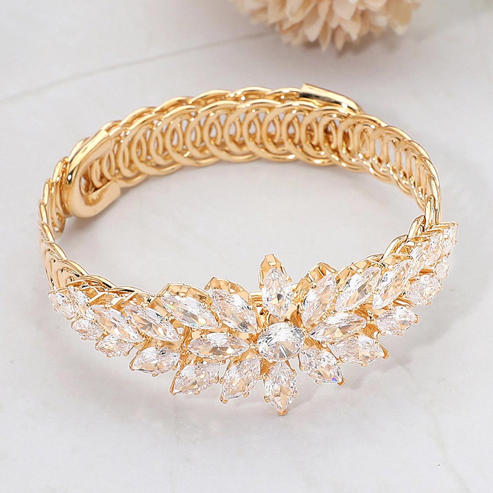Marquise CZ Stone Cluster Floral Adjustable Evening Bracelet Marquise CZ Stone Cluster Floral Adjustable Evening Bracelet