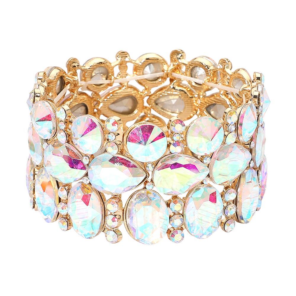 Multi Stone Cluster Evening Stretch Bracelet