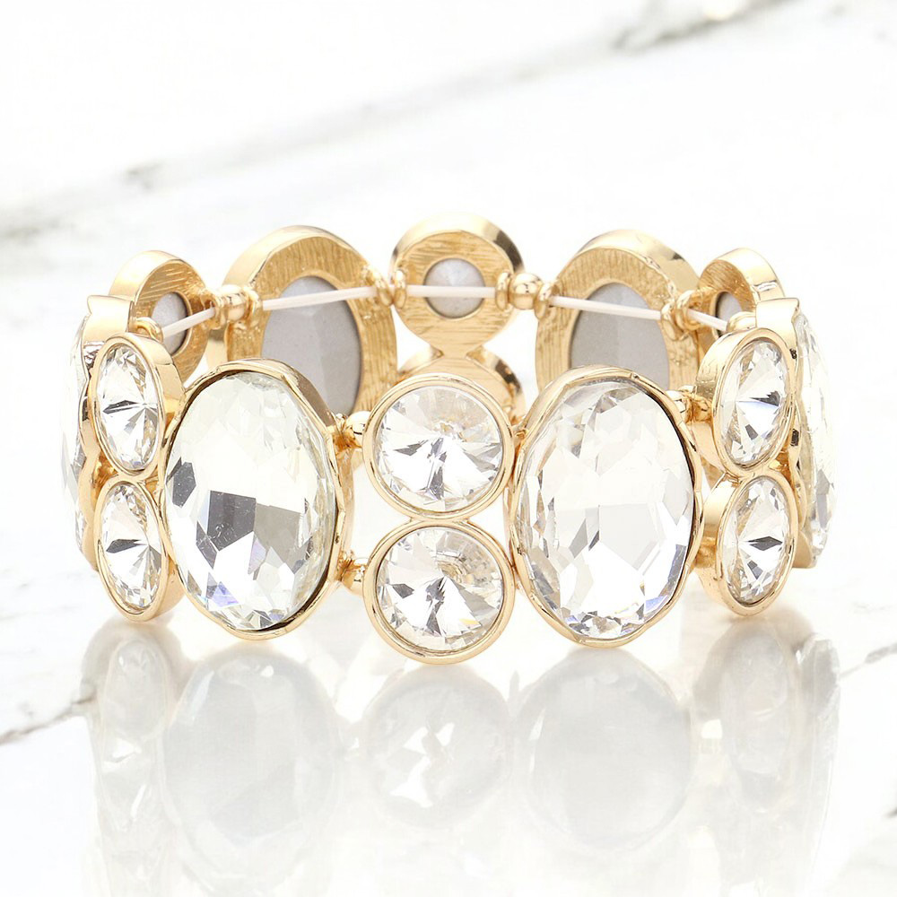 Oval Crystal Rhinestone Stretch Evening Bracelet