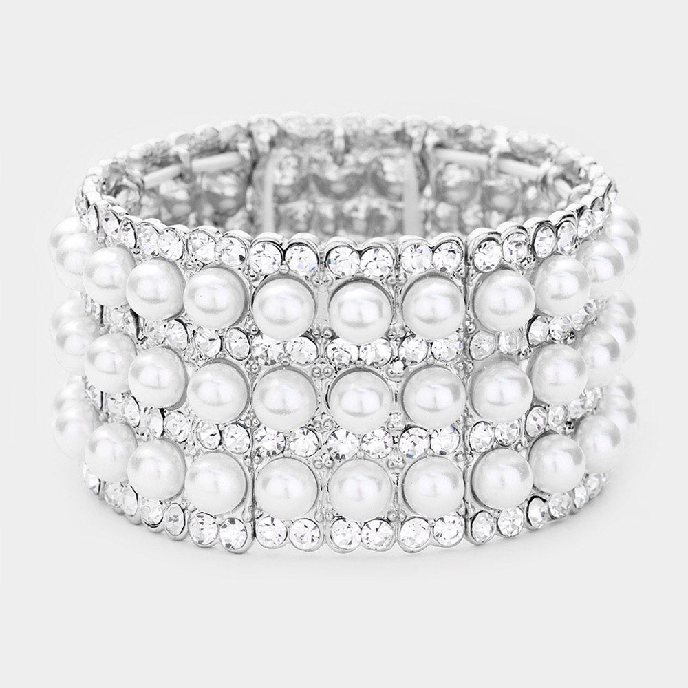 Pearl Rhinestone Crystal Stretch Evening Bracelet