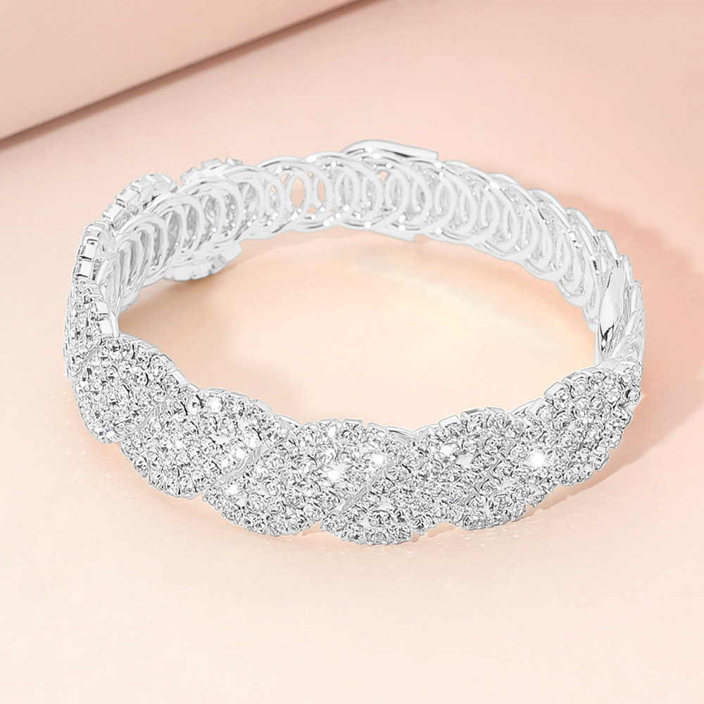 Rhinestone Paved Twisted Adjustable Evening Bracelet