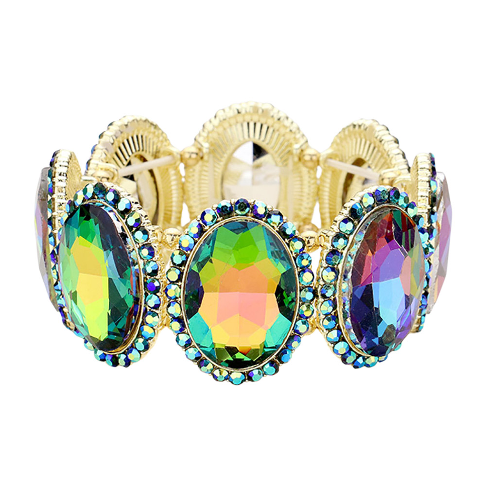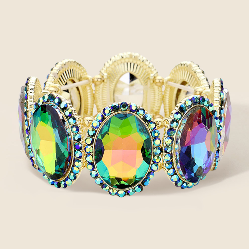 Rhinestone Trim Oval Crystal Stretch Evening Bracelet