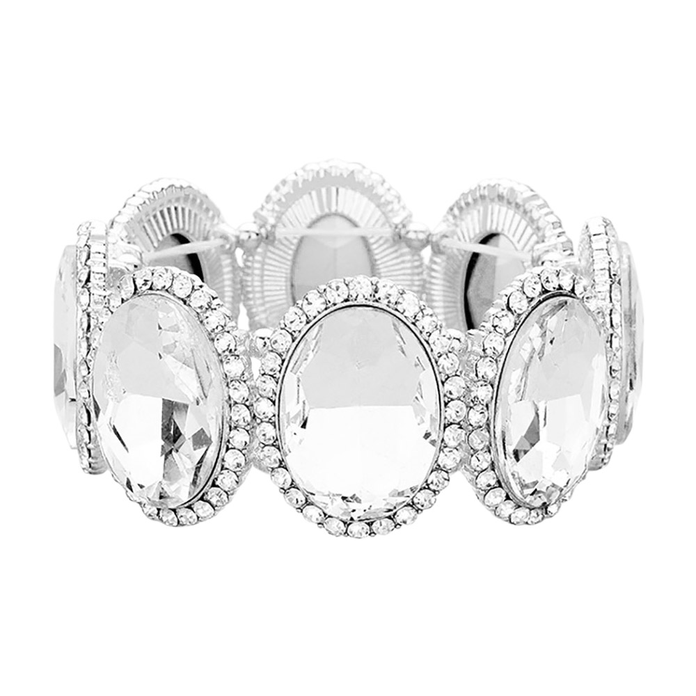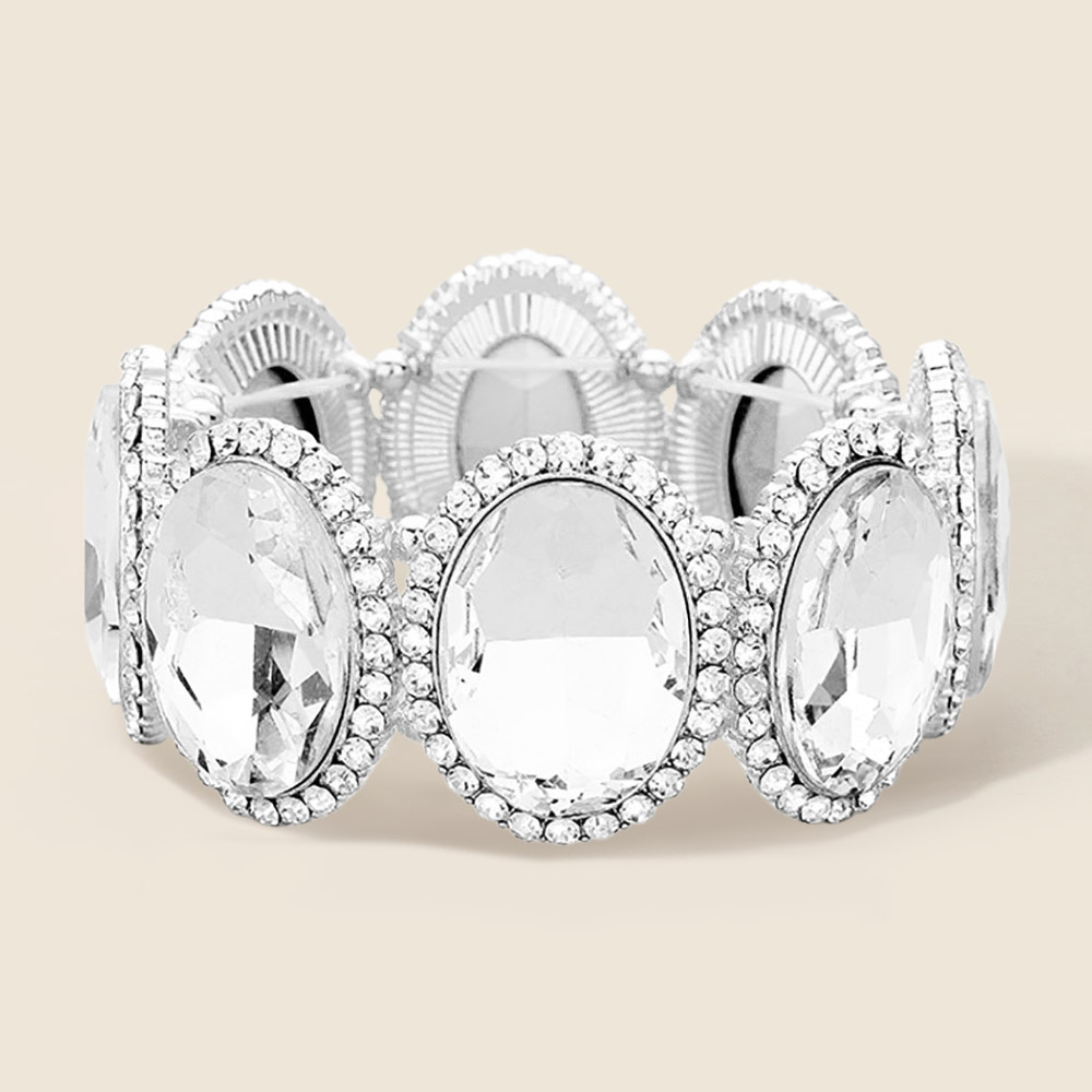 Details • Size : 1.25" H • Stretchable • Add glamour to your look with this oval crystal stretch bracelet featuring sparkling stones framed in dazzling accents. The flexible fit ensures comfort while delivering bold elegance. Ideal for weddings, parties, and special occasions where standout style matters.