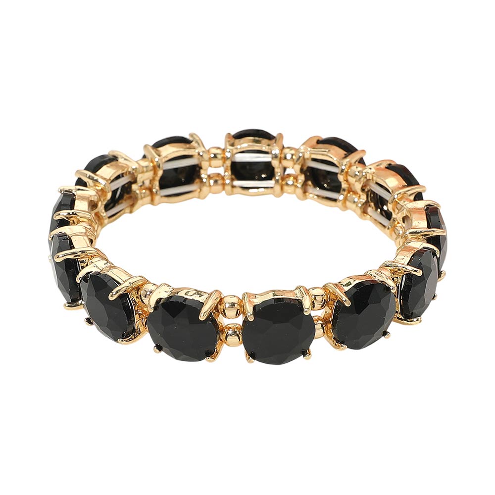 Round Stone Cluster Beaded Stretch Evening Bracelet
