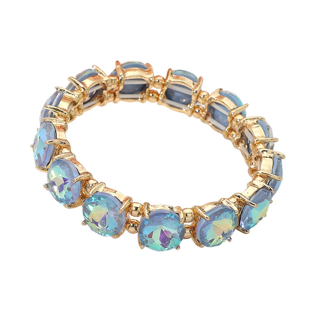 Round Stone Cluster Beaded Stretch Evening Bracelet