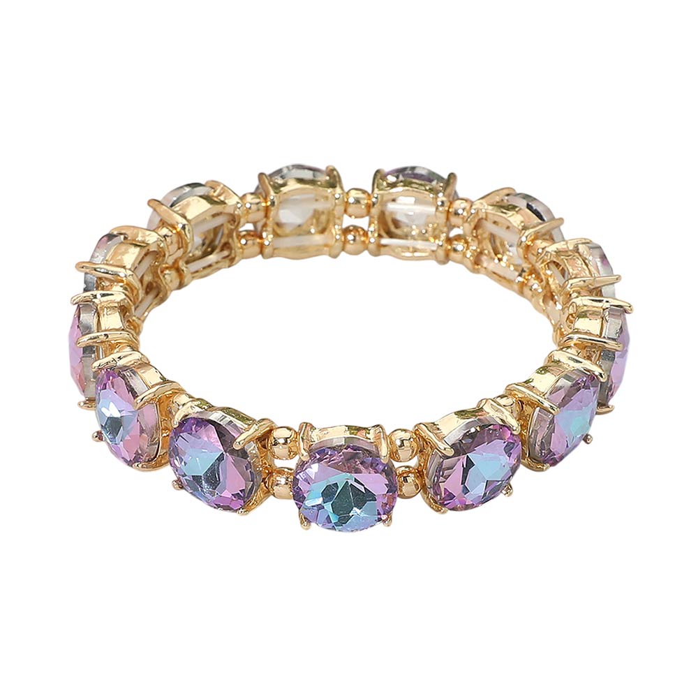 Round Stone Cluster Beaded Stretch Evening Bracelet