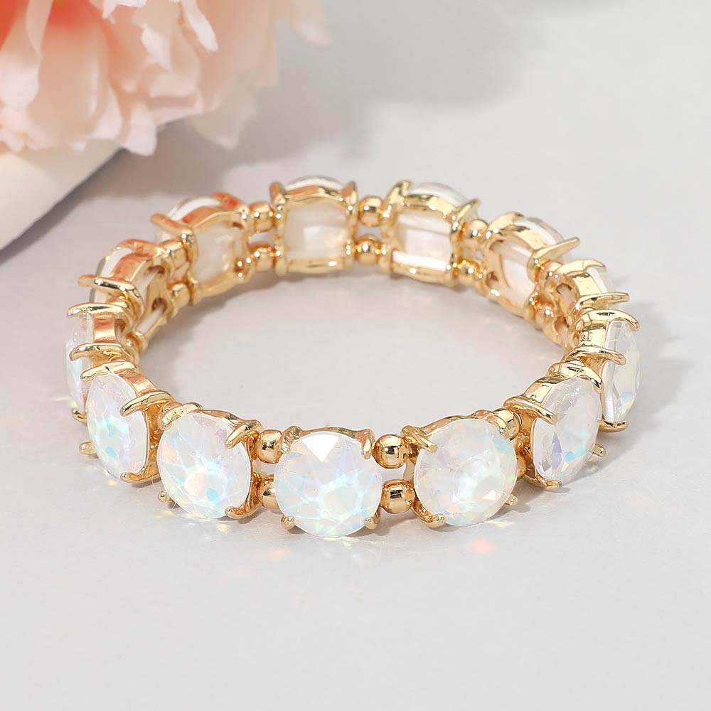 Round Stone Cluster Beaded Stretch Evening Bracelet