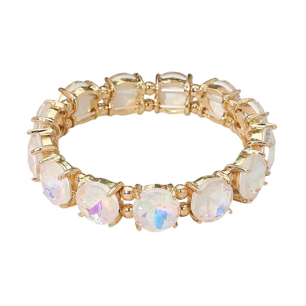 Round Stone Cluster Beaded Stretch Evening Bracelet