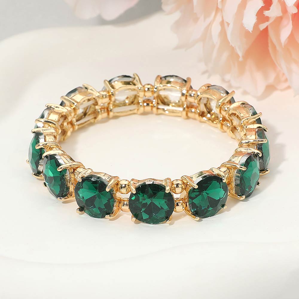 Round Stone Cluster Beaded Stretch Evening Bracelet