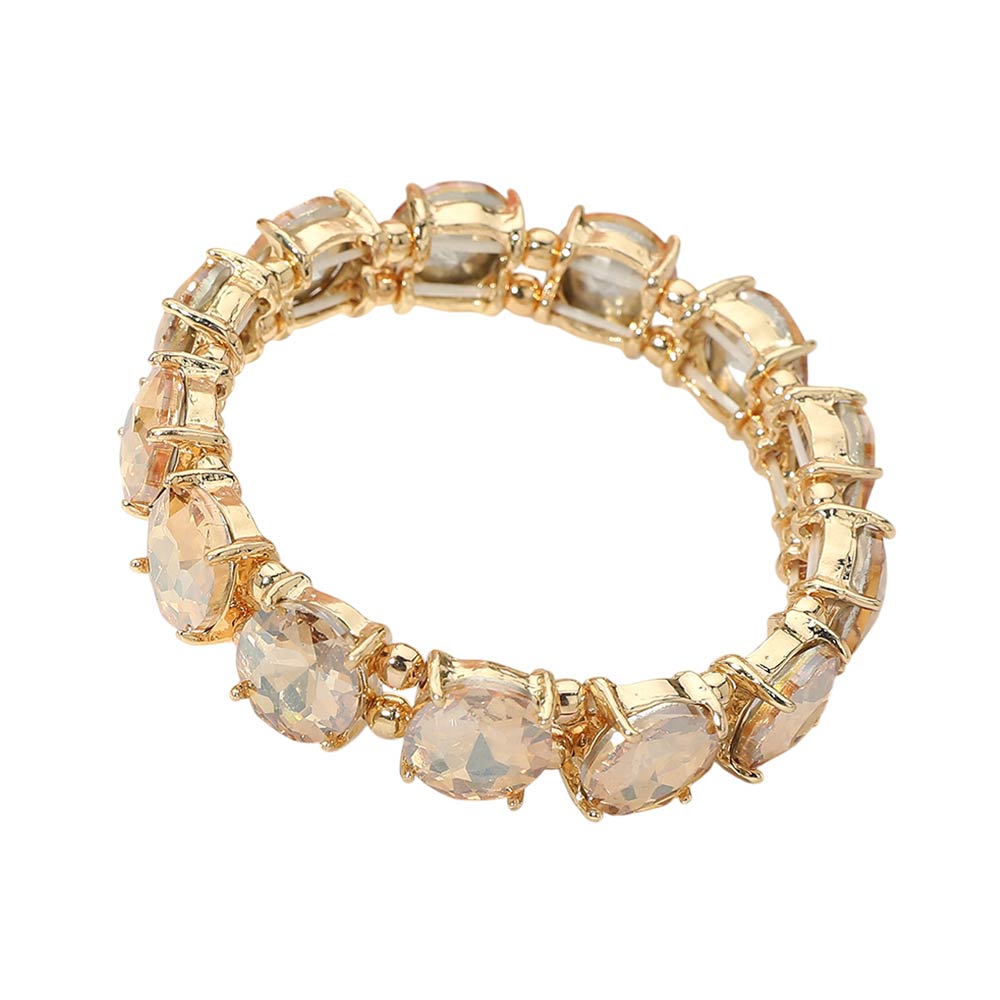 Round Stone Cluster Beaded Stretch Evening Bracelet