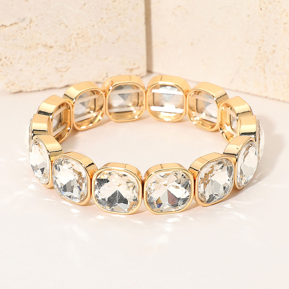 Square Cut Gem Beaded Stretch Evening Bracelet