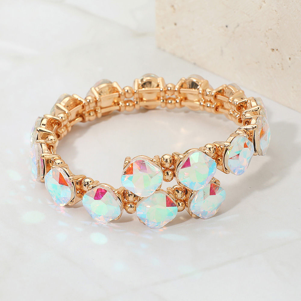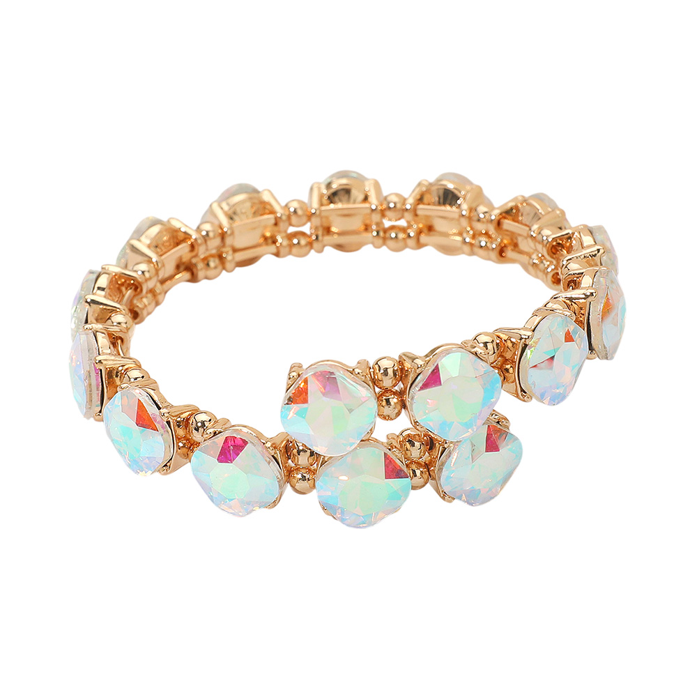 Square Stone Cluster Link Adjustable Evening Bracelet