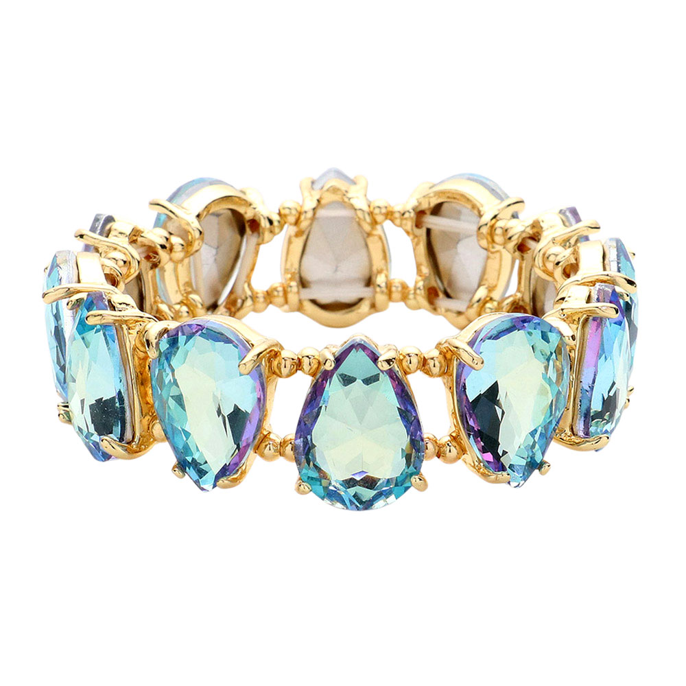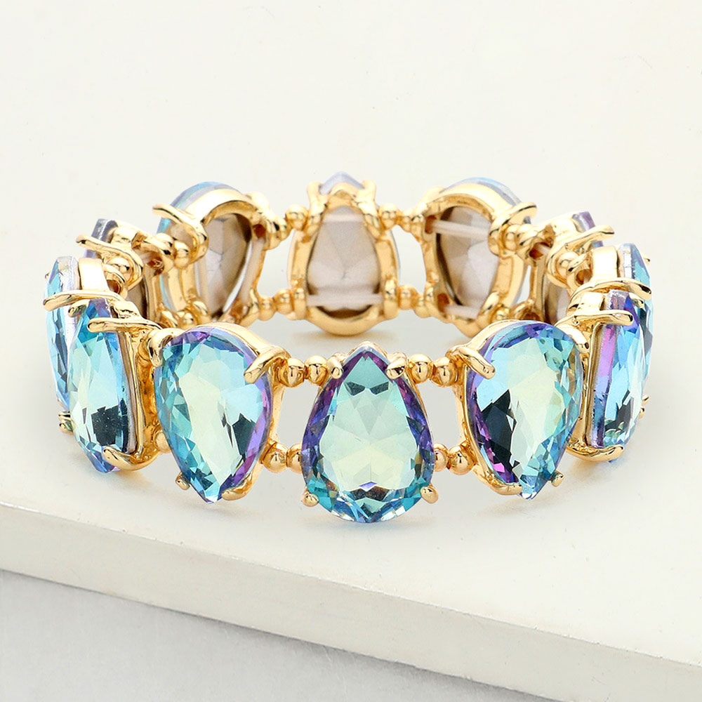 Teardrop Glass Stone Cluster Stretch Evening Bracelet
