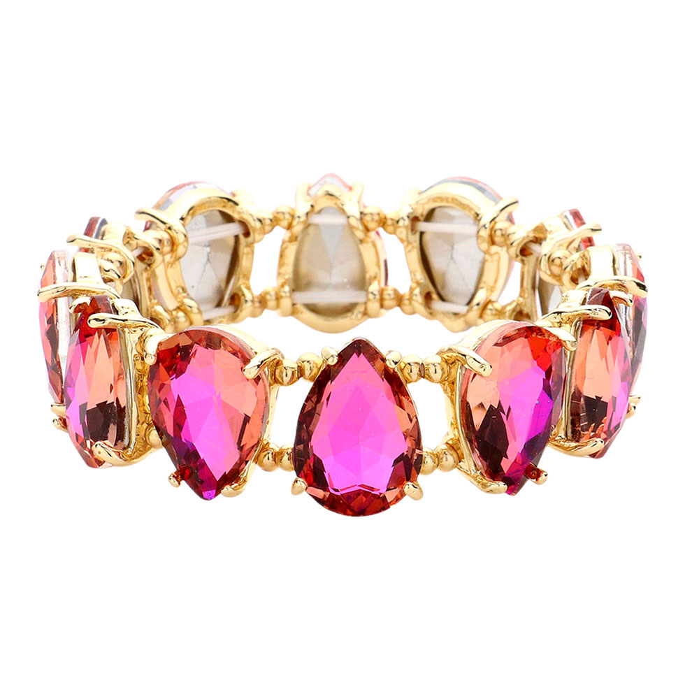 • Elevate your style with this stunning stretch bracelet featuring teardrop-cut crystals in a bold, elegant design. Perfect for formal events, special occasions, or adding sparkle to any outfit.