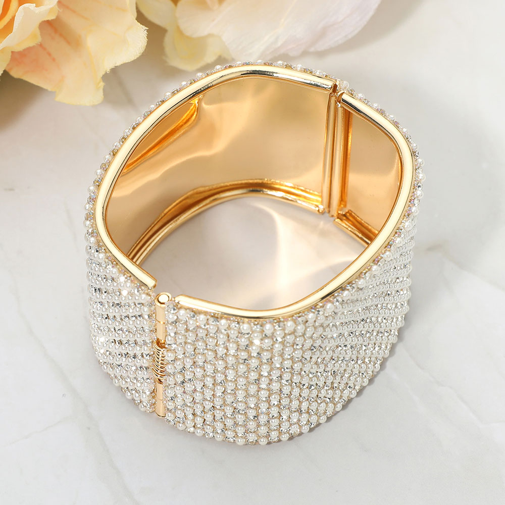 Wide Pearl Paved Hinged Evening Bangle Bracelet