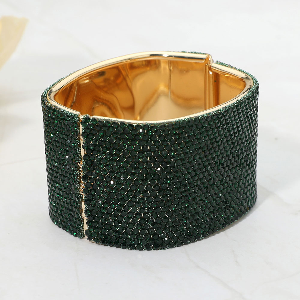 • Statement bangle bracelet featuring a bold, wide silhouette with a smooth interior and secure hinge closure. Designed to elevate evening looks, bridal styling, and special occasions, this bracelet delivers high-impact shine and a polished finish for confident, standout accessorizing.