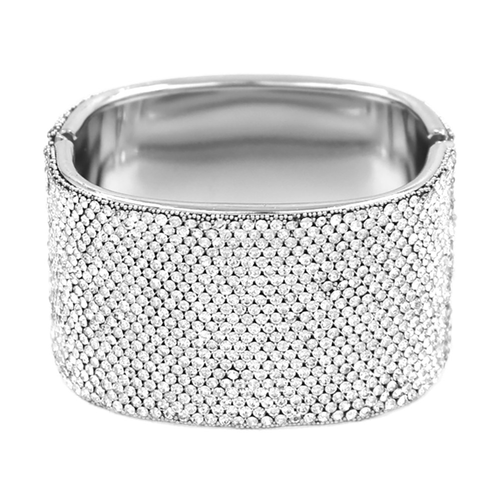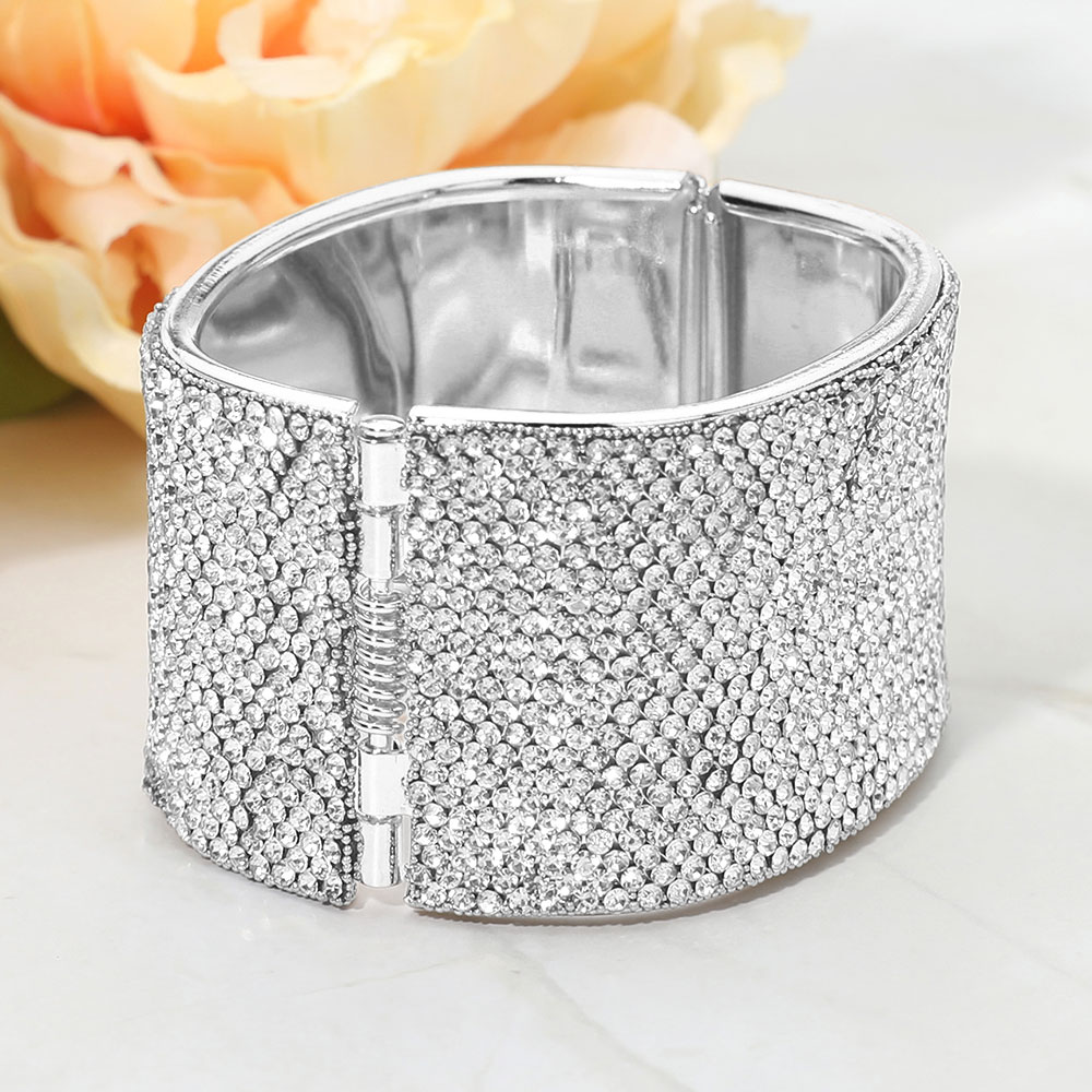 Wide Rhinestone Paved Hinged Evening Bangle Bracelet