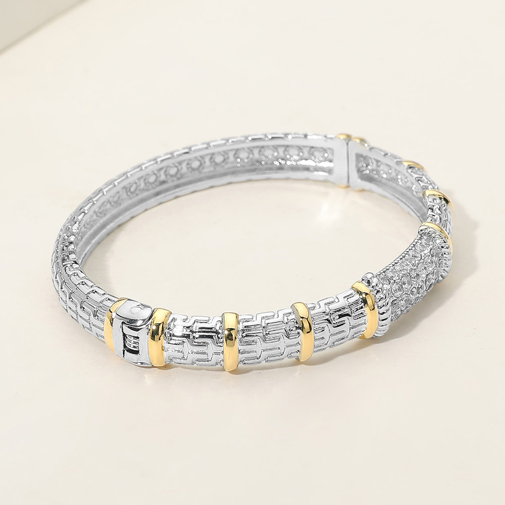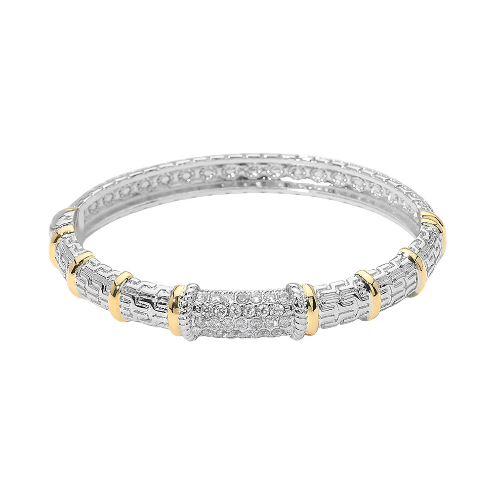 14K Gold Plated CZ Stone Pave Two Tone Hinged Bangle Bracelet