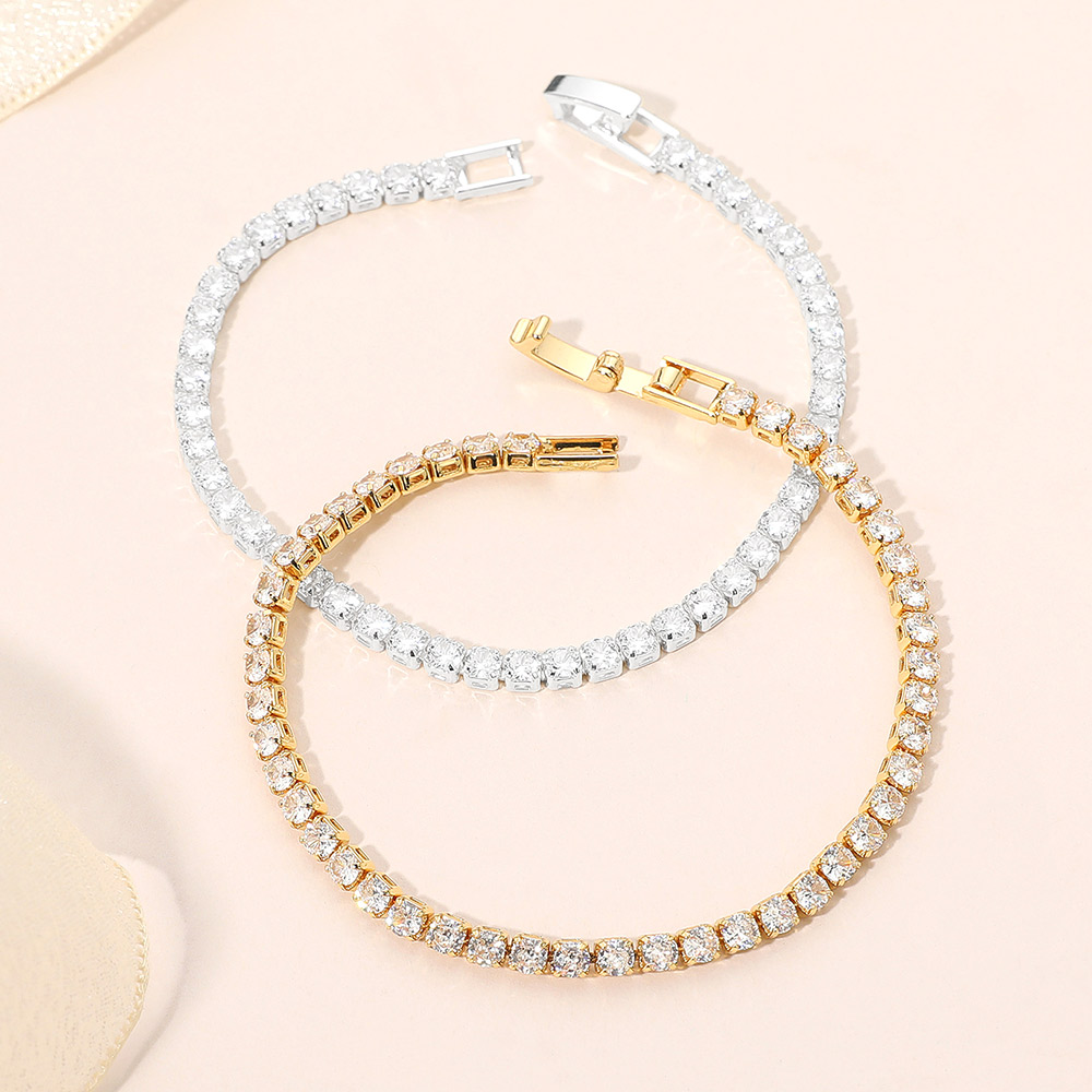 Details • Size : 0.1" H, 6.5" + 1" L • Fold Over Closure • Sophisticated tennis bracelet showcasing a continuous line of radiant round stones for timeless sparkle. Featuring a secure clasp and polished finish, this bracelet adds classic charm to any ensemble, perfect for evening wear, formal events, or refined everyday elegance. • Gold Dipped • Lead and Nickel Compliant