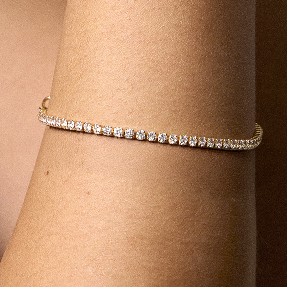 • This classic tennis chain bracelet delivers timeless elegance with a clean, refined silhouette. Designed with an adjustable extension for a comfortable fit, it’s ideal for stacking or wearing solo. A versatile jewelry essential perfect for everyday styling, special occasions, gifting, and curated retail collections.