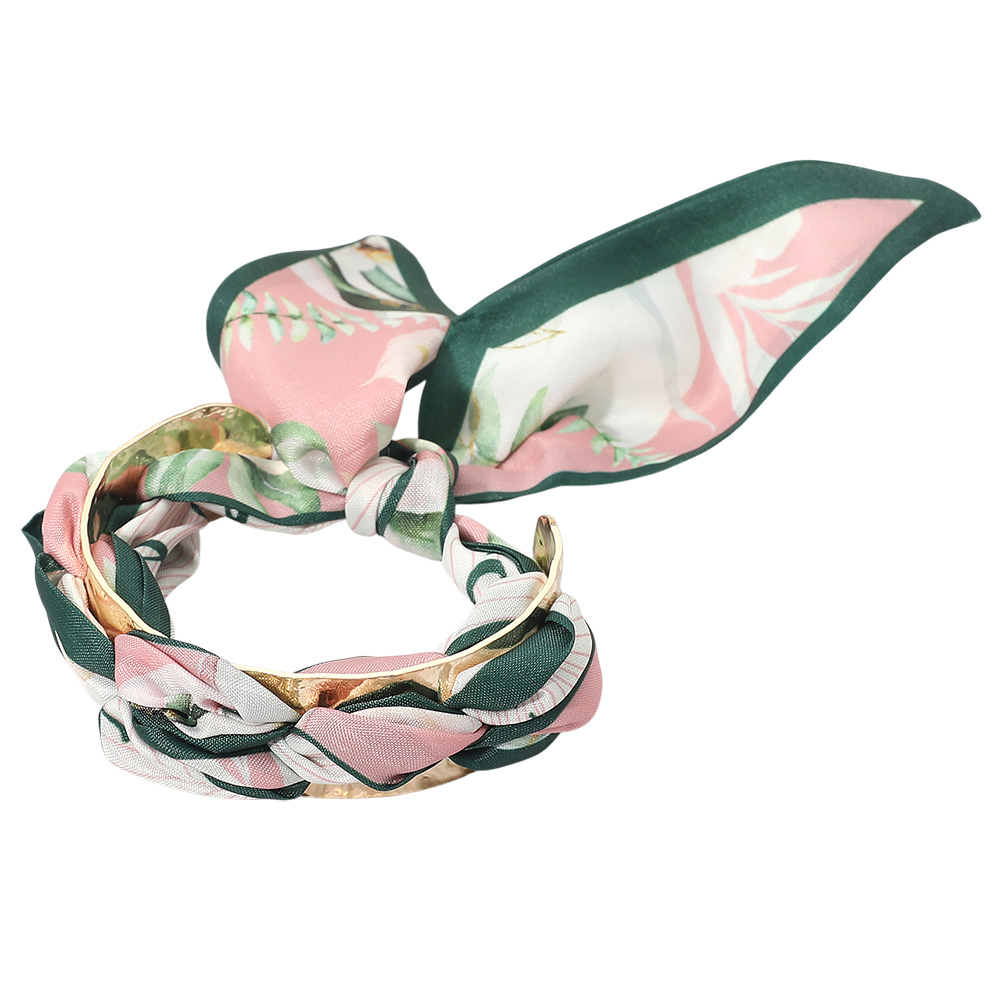 Adjustable Fabric Scarf Knot Wrap Metal Cuff Bracelet