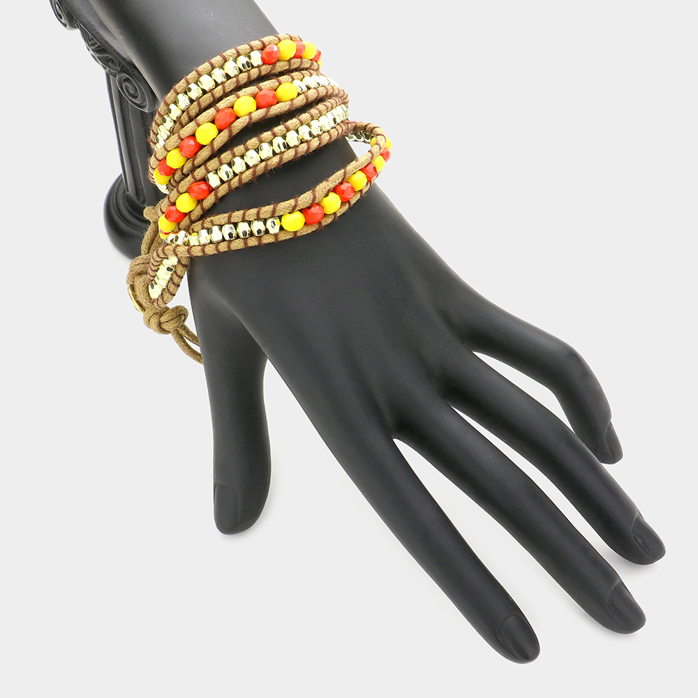 4PCS - GAME DAY Message Paw Charm Beaded Stretch Multi Layered Bracelets