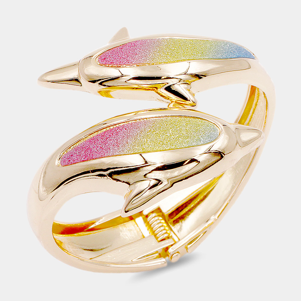 Bling Double Dolphin Hinged Bracelet
