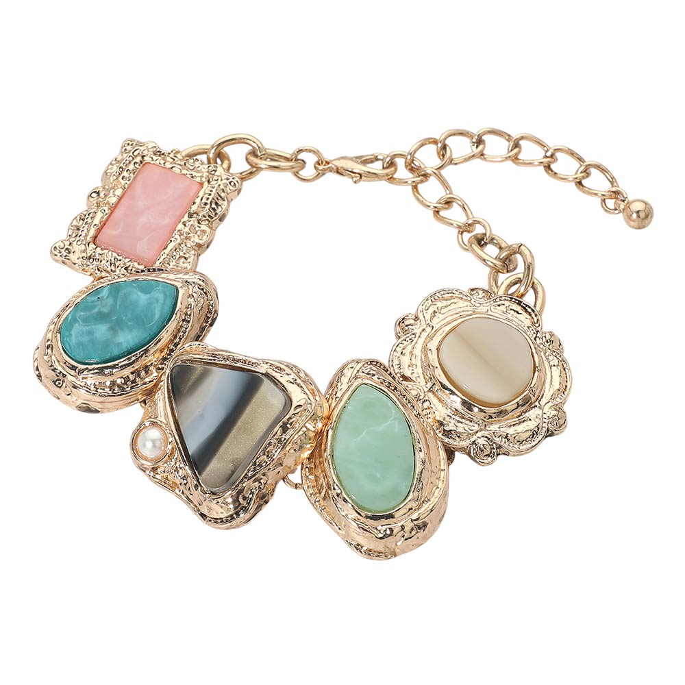 Bold Mixed Vintage Frame Stone Charm Link Statement Bracelet