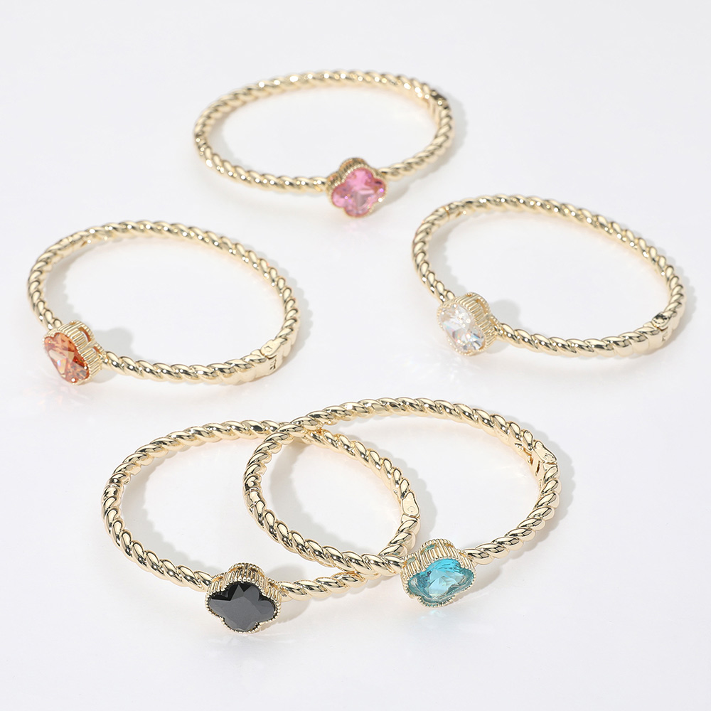 CZ Quatrefoil Stone Accented Twisted Hinged Bangle Bracelet