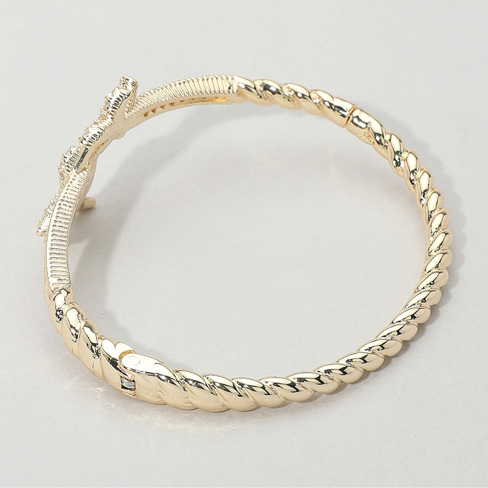 • Chic twist bangle bracelet with shimmering pavĂ© crystals and a starfish-inspired clasp. A perfect accessory to add sparkle and coastal charm to your outfit.