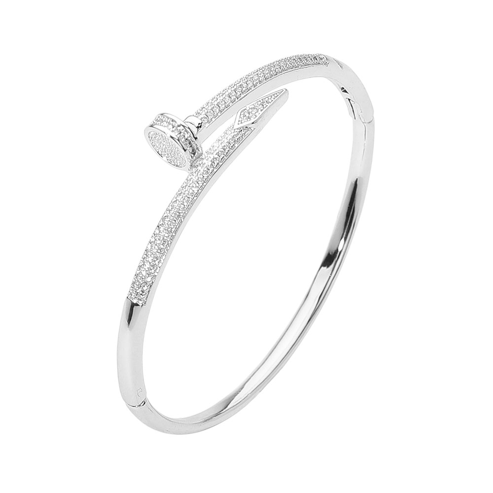 • This elegant cz stone paved nailhead bangle bracelet showcases a sleek, modern silhouette accented with sparkling crystals. Designed for sophistication and style, it offers a statement of refined luxury that pairs beautifully with both everyday and formal looks, adding subtle brilliance to any outfit.