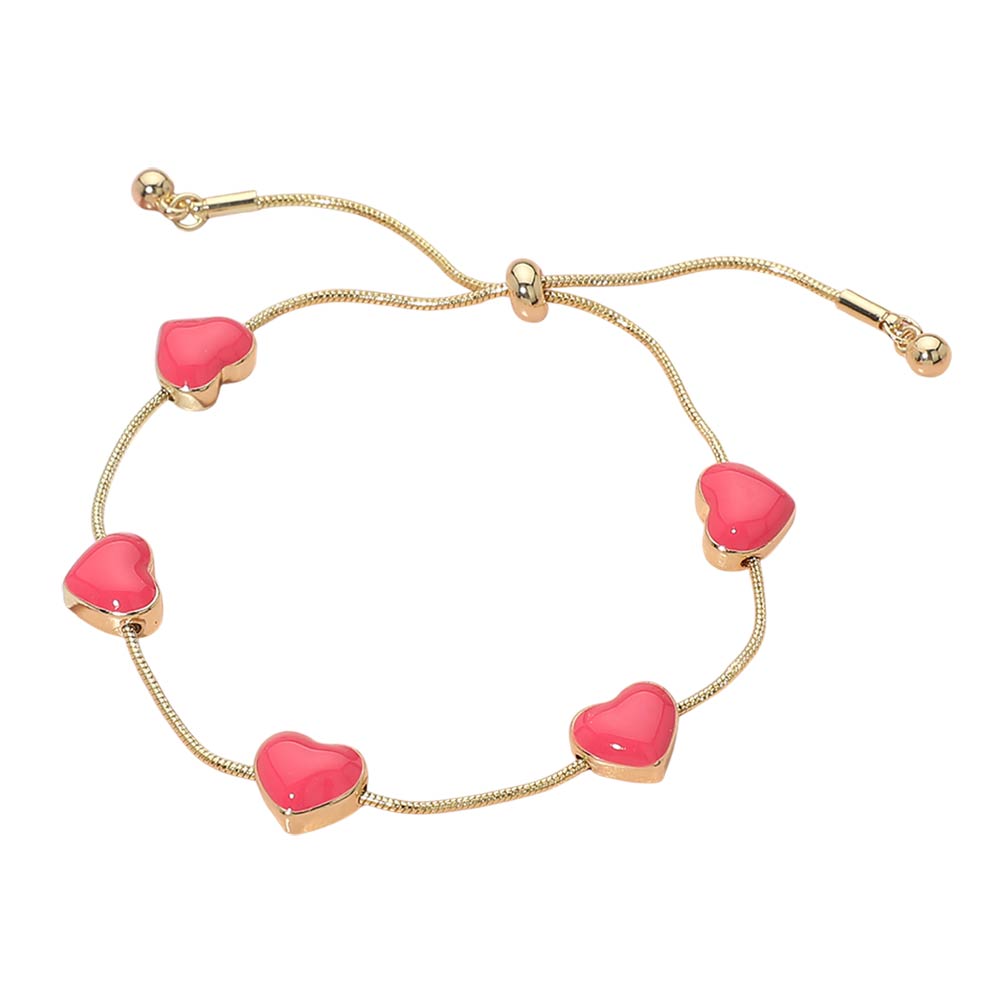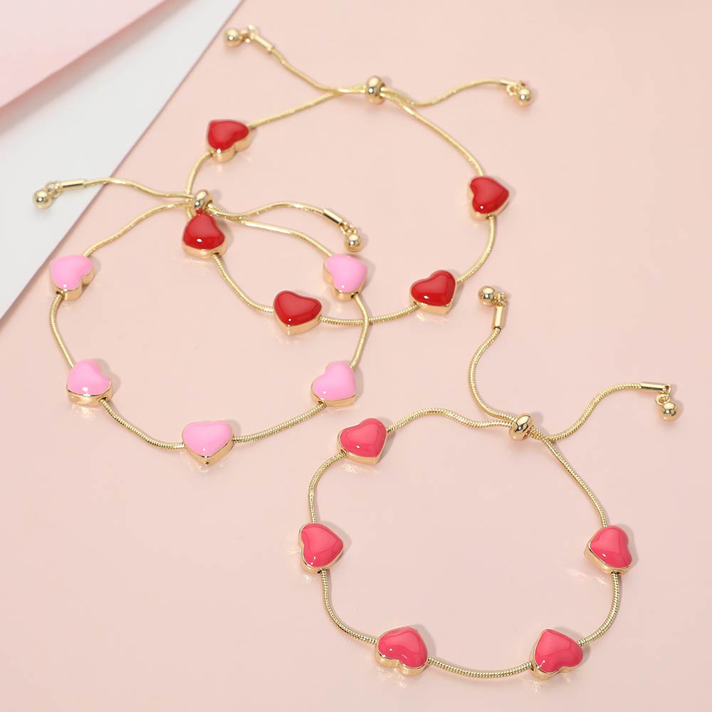 • Elegant adjustable bracelet featuring glossy heart station accents evenly spaced along a smooth slider chain. Designed for a comfortable, flexible fit, this romantic style is perfect for everyday wear, gifting, or layering with other bracelets. A charming addition to boutique assortments and curated jewelry collections.