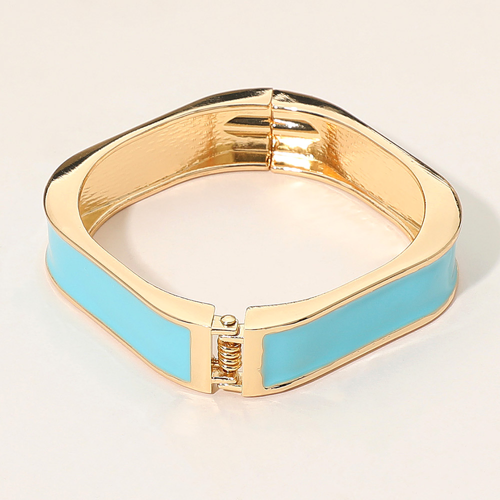 Details • Size : 0.6" H, 2.25" D • Hinged Closure • Modern rectangular hinged bangle bracelet featuring a sleek enamel surface and polished finish. Its clean geometric shape adds a minimalist yet chic touch to any outfit. Perfect for elevating both casual and formal styles with refined sophistication and timeless appeal. • Lead and Nickel Compliant