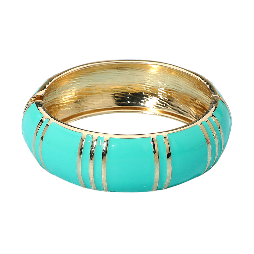 Details • Size : 0.9" H, 2.5" D • Hinged Closure • Chic dome-shaped bracelet featuring sleek striped accents and a smooth polished finish. Designed with a secure hinged closure for comfort and ease, this bold fashion accessory adds modern sophistication and a refined touch to any outfit or occasion. • Lead and Nickel Compliant