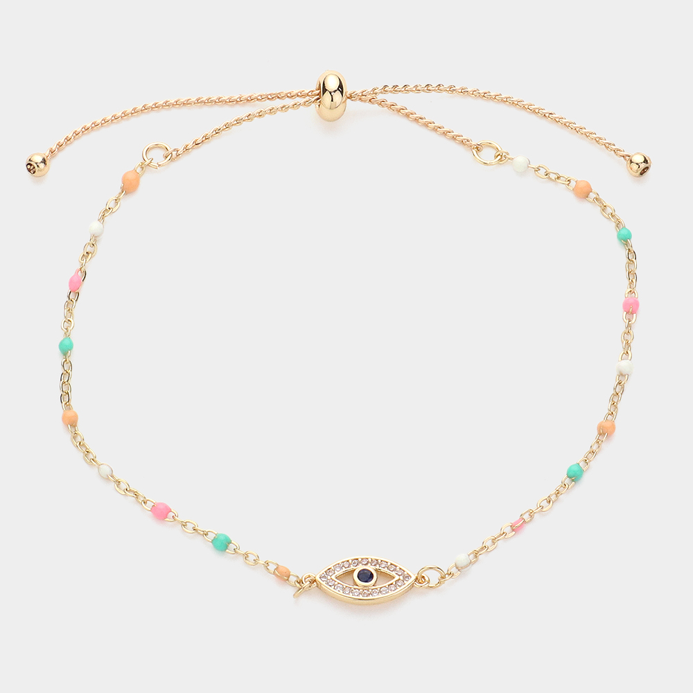 Evil Eye Pointed Beads Station Pull Tie Bracelet