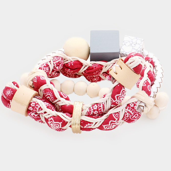 Colorful Wood Pointed Multi Layered Pearl Stretch Bracelet
