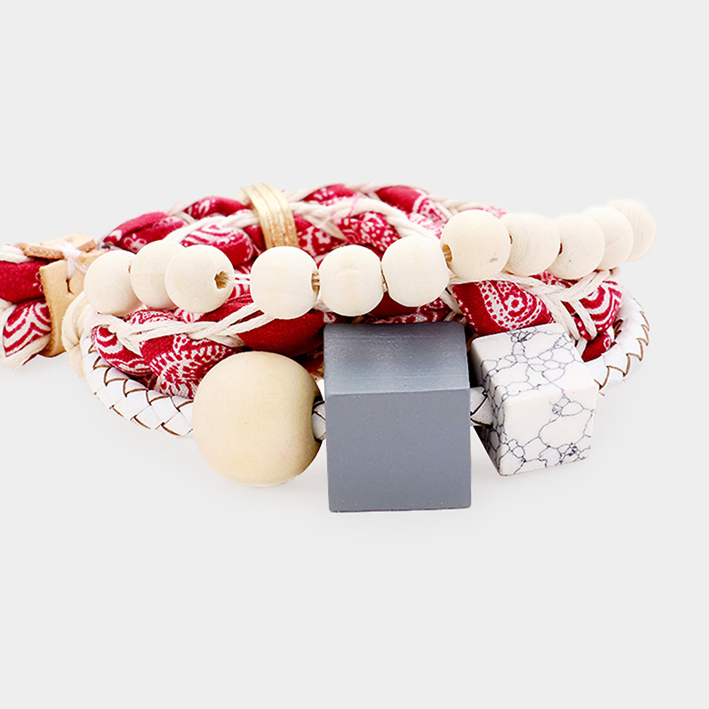4PCS - Wood Ball Multi Beaded Stretch Bracelets