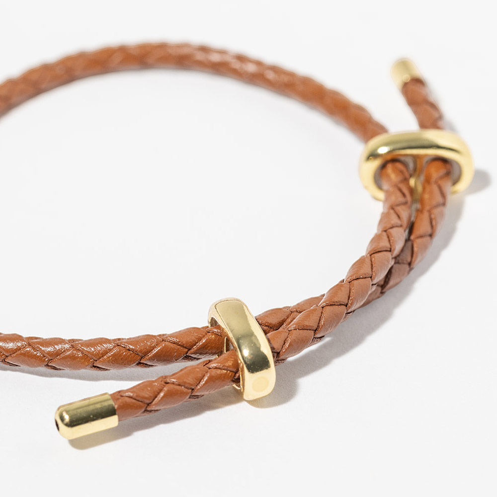 Faux Leather Braided Gold Dipped Tip Adjustable Bracelet