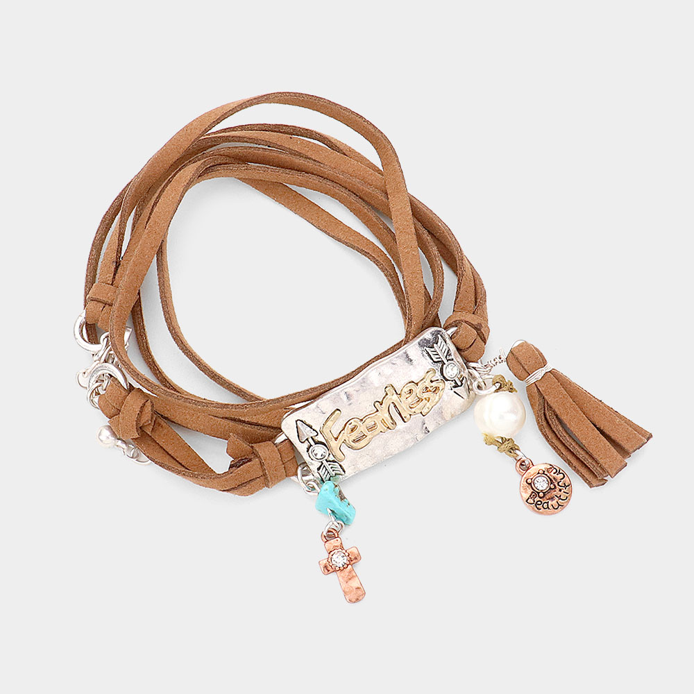 "Fearless" Hammered Arrow & Cross Suede Tassel Bracelet