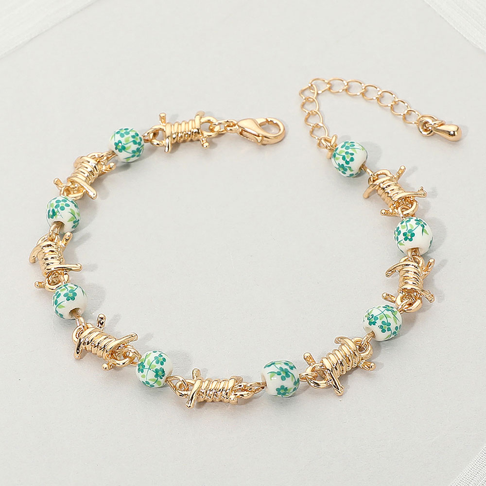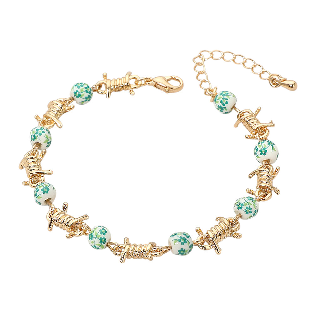 Floral Ceramic Ball Metal Rope Wrap Link Bracelet Floral Ceramic Ball Metal Rope Wrap Link Bracelet Floral Ceramic Ball Metal Rope Wrap Link Bracelet Floral Ceramic Ball Metal Rope Wrap Link Bracelet