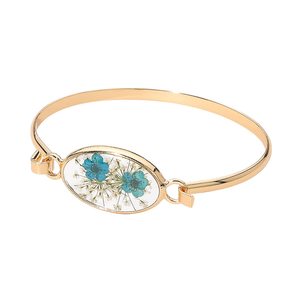 • Elevate everyday style with this Floral Encased Oval Bangle Bracelet, featuring a delicate preserved-flower centerpiece inside a sleek oval frame. Designed for comfortable wear and easy layering, it adds a refined, nature-inspired accent to casual looks, work outfits, or special occasions and makes a thoughtful gift choice.
