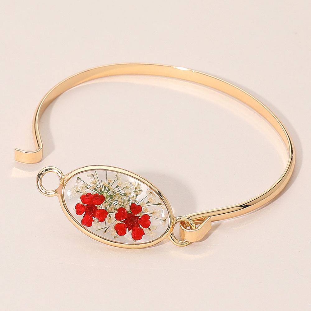 • Elevate everyday style with this Floral Encased Oval Bangle Bracelet, featuring a delicate preserved-flower centerpiece inside a sleek oval frame. Designed for comfortable wear and easy layering, it adds a refined, nature-inspired accent to casual looks, work outfits, or special occasions and makes a thoughtful gift choice.