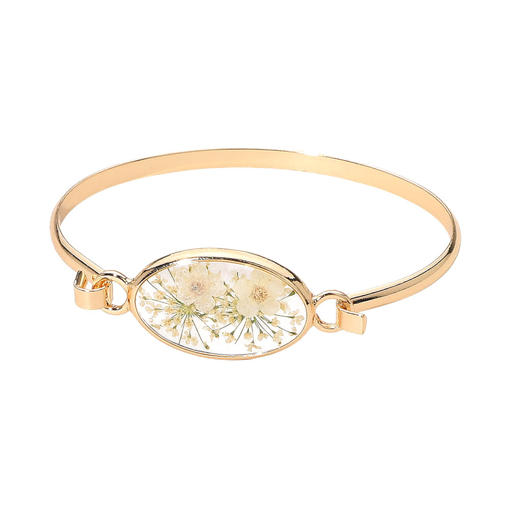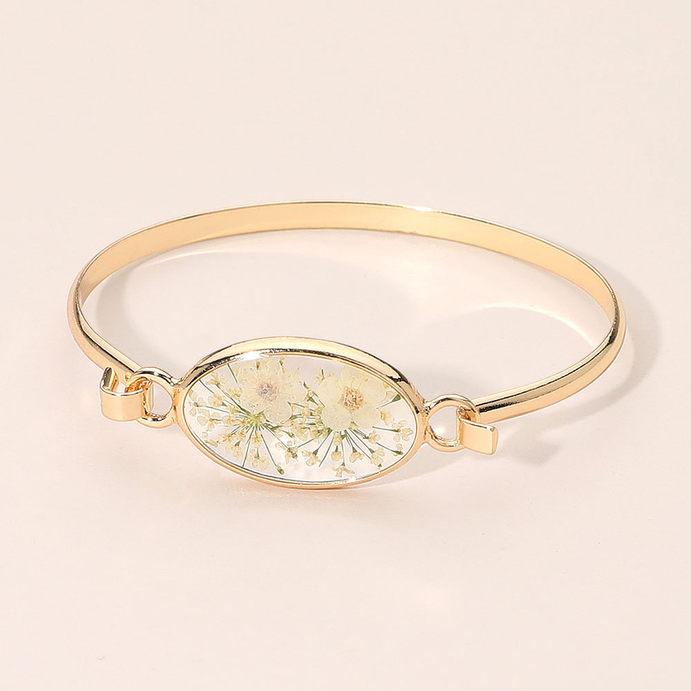 • Elevate everyday style with this Floral Encased Oval Bangle Bracelet, featuring a delicate preserved-flower centerpiece inside a sleek oval frame. Designed for comfortable wear and easy layering, it adds a refined, nature-inspired accent to casual looks, work outfits, or special occasions and makes a thoughtful gift choice.